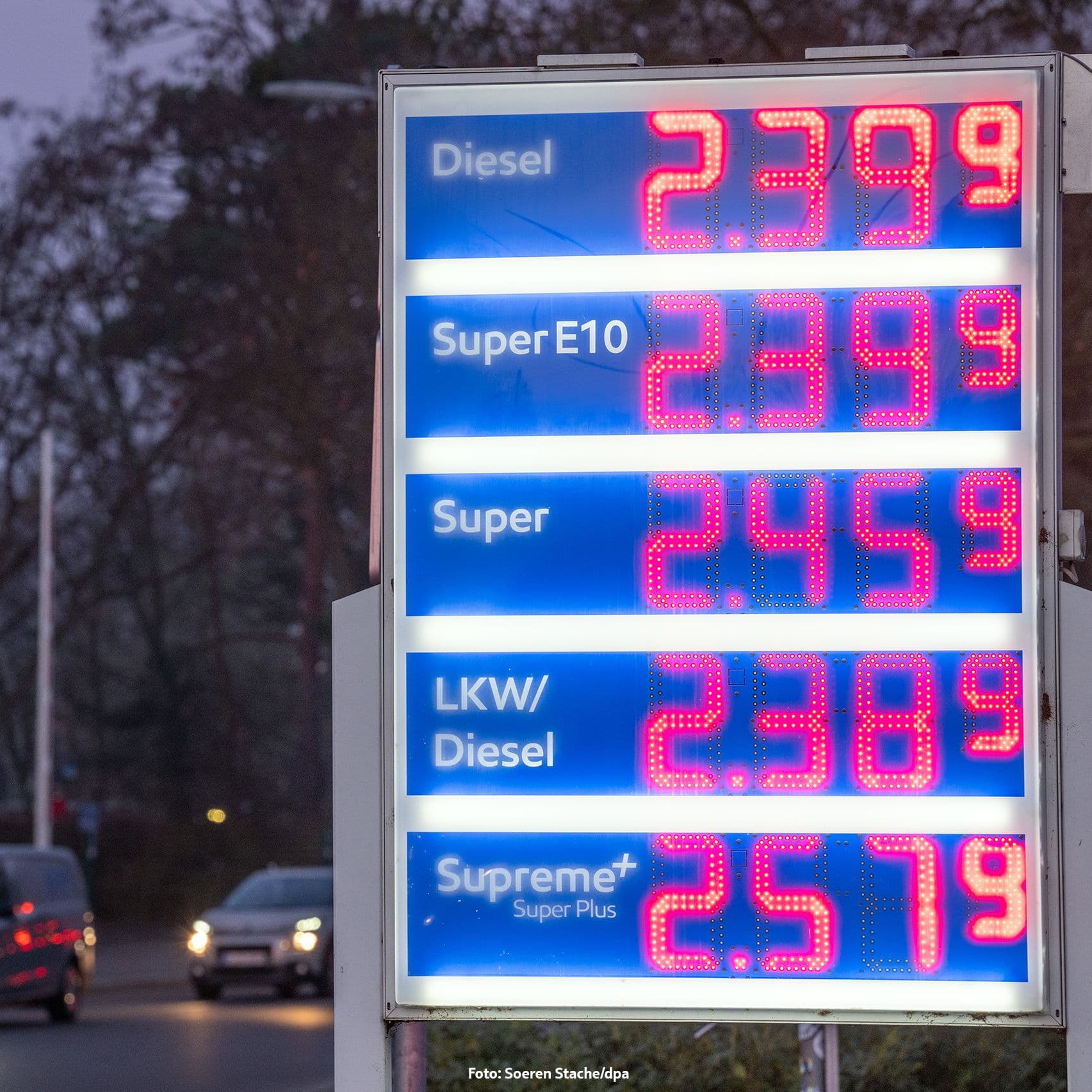 Der bundesweite Preis für Diesel liegt bei etwa 2,06 Euro pro Liter, Super E10 kostet rund 1,94 Euro. Ein starker Anstieg infolge des Krieges im Nahen Osten. (Stand: 6.3.2026)