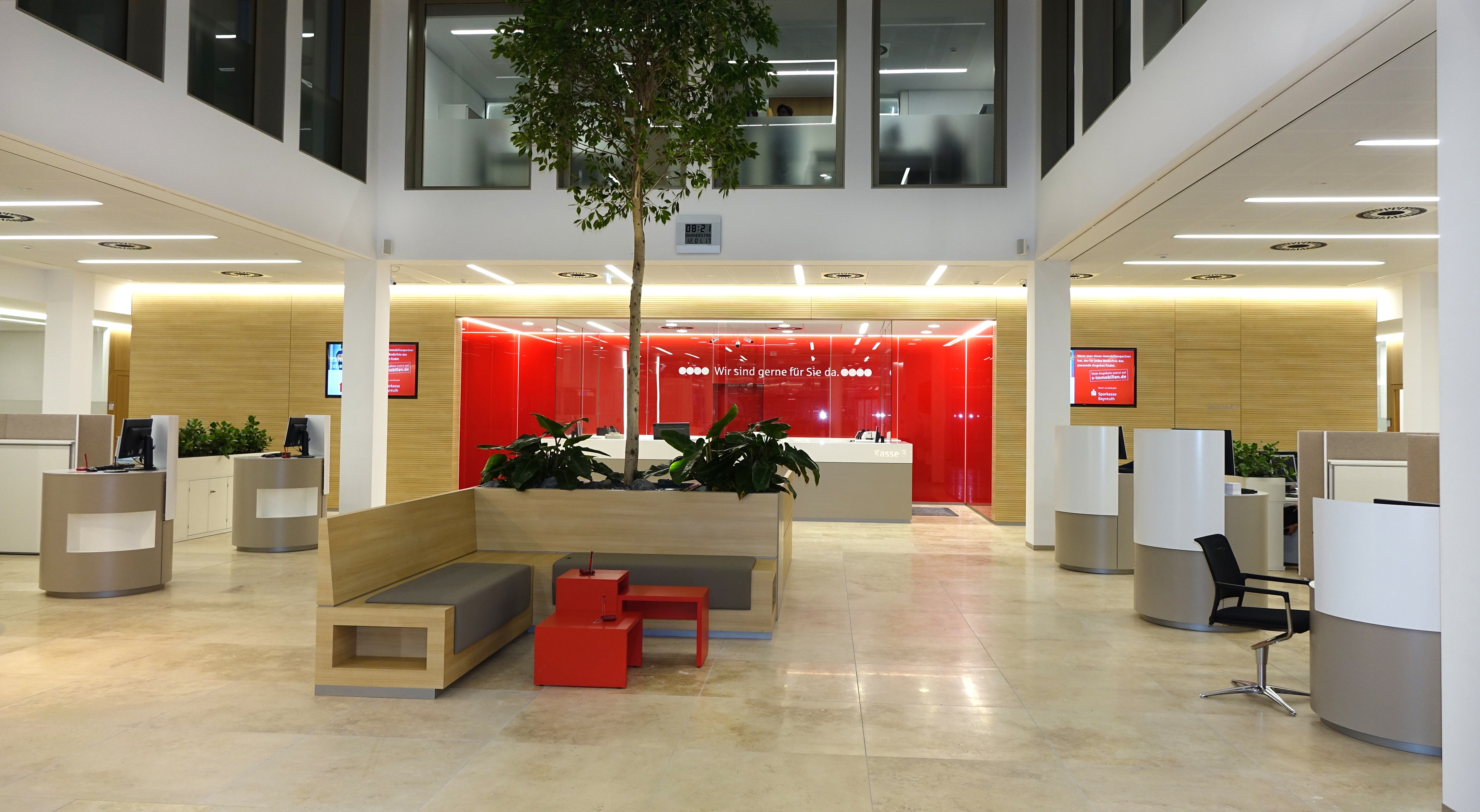 Schalterhalle im Kundenhaus am Luitpoldplatz in Bayreuth.